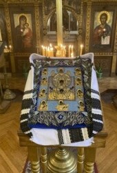 The Kursk-Root Icon of the Mother of God. On the last day of the year, together with a group of mostly young pilgrims, we had the blessing to pray an akathist in front of the Kursk Icon, located at the Synod of the Russian Orthodox Church Outside Russia (ROCOR) in Manhattan. This was made possible by the goodwill of His Grace Nikolai of Manhattan, who, impressed by the piety and beauty of our young people’s singing, allowed us to spend three hours in prayer before the icon and gave us a tour of the cathedral. His Grace Nikolai was also open to repeating such events and organizing meetings between young Romanian Orthodox and young Russian Orthodox, either in New York or at the Holy Trinity Monastery in Jordanville, NY.