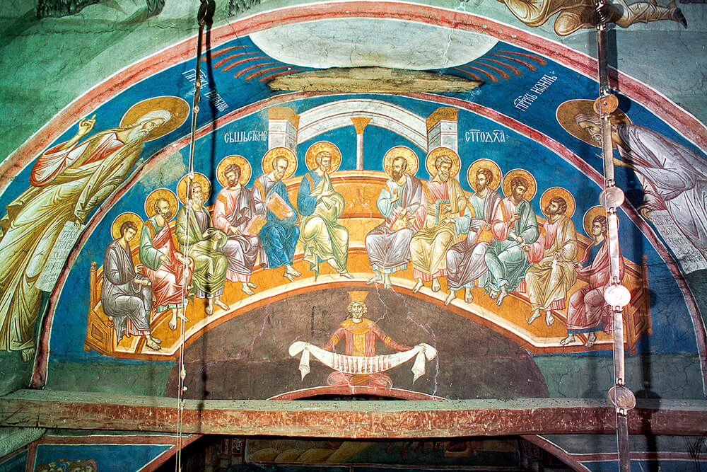 Today is the great feast, the fulfillment and crown of all holidays! The Lord says to the disciples, in his farewell address: “It is to your advantage that I go away; for if I do not go away, the Helper will not come to you” (John 16:7). It is this mystery, which is a little difficult for us to understand, of the conditions in which the Holy Spirit can descend upon the world. Last night at Vespers, we heard the prophecy of Joel, in which God the Father says that in the last days, “I will pour out My Spirit on all flesh; Your sons and your daughters shall prophesy” (Joel 2:28). Well, this cosmic event took place fifty days after the resurrection of the Lord, at Pentecost. It couldn’t have happened before. We deduce that the Holy Spirit cannot come on the world, on people, in just any way.