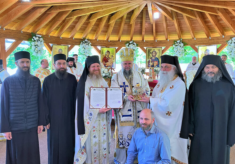 The feast day, 27 May 2023, began with the Hierarchical Divine Liturgy served by His Eminence Nicolae together with Father Abbot Melchisedec and many other priests and deacons. The hymns of the Divine Liturgy were remarkable, weaving together the voices of Putna with those from American soil into a single voice of prayer to God.