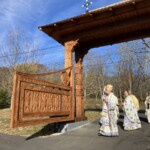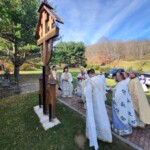 The feast continued on Saturday morning, when His Eminence Metropolitan Nicolae blessed two wooden sculptures that beautified our monastery this summer: a large wooden cross, sculpted at Putna Monastery, and a Romanian Welcome Gate, sculpted by a team of skilled carpenters in Bârsana, Maramureș.